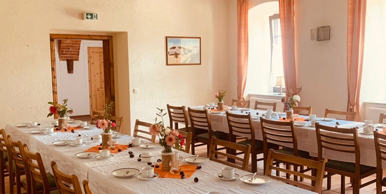 Ideal für Feiern, Hochzeiten und besondere Anlässe. Genießen Sie die historische Atmosphäre unseres Rittersaals mit bis zu 120 Personen.